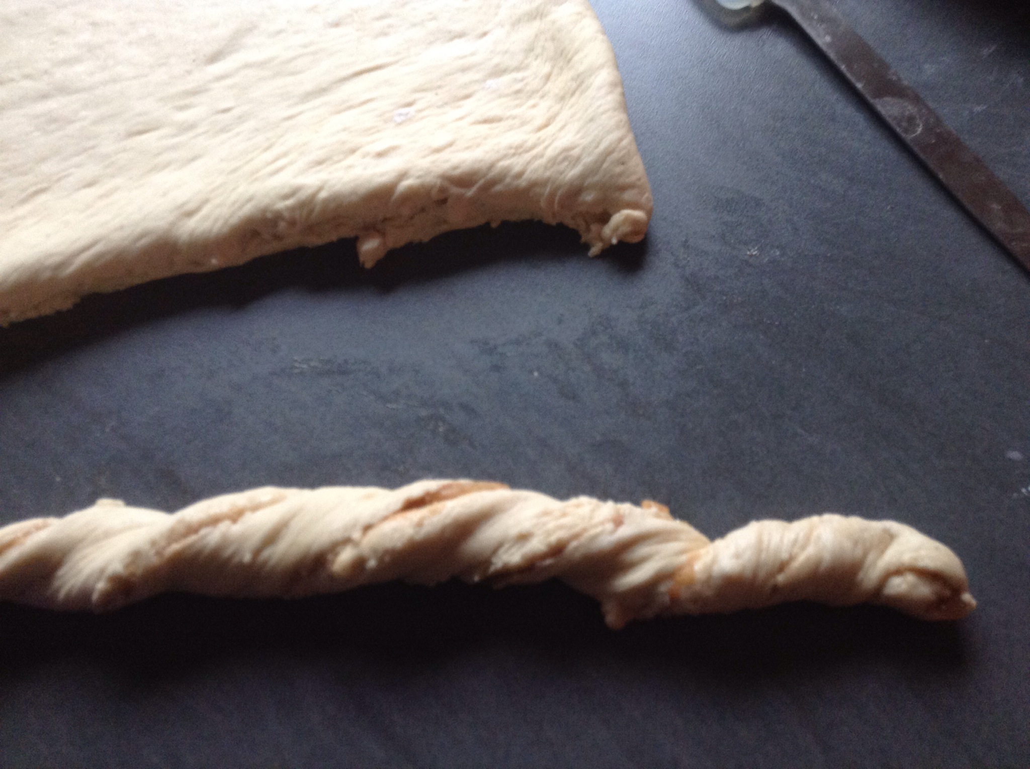 Legg den ene halvdelen oppå den andre og kjevle det litt mer ut.