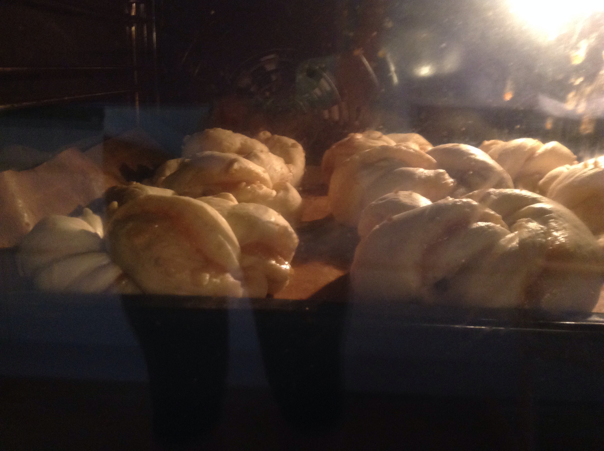 Stek midt i ovnen på 200 grader i Ca 18-20 min. De skal være gylne.